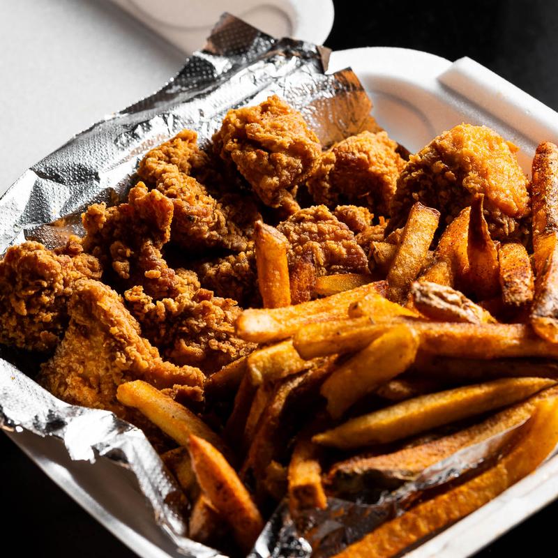 Hand cut and breaded boneless chicken seasoned and fried to perfection. served with our hand cut fries