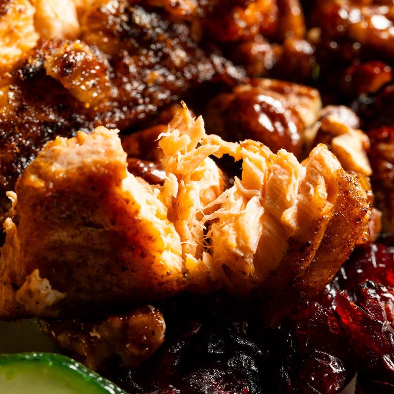 Cajun seasoned salmon filet seared topped with our signature honey hot sauce
